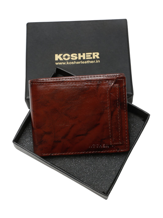 KOSHER Brown Color Men,s Classic Bi-Fold Premium Leather Wallet with Coin Pocket & Rear Slip Pocket For Card Slots
