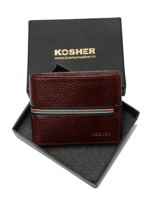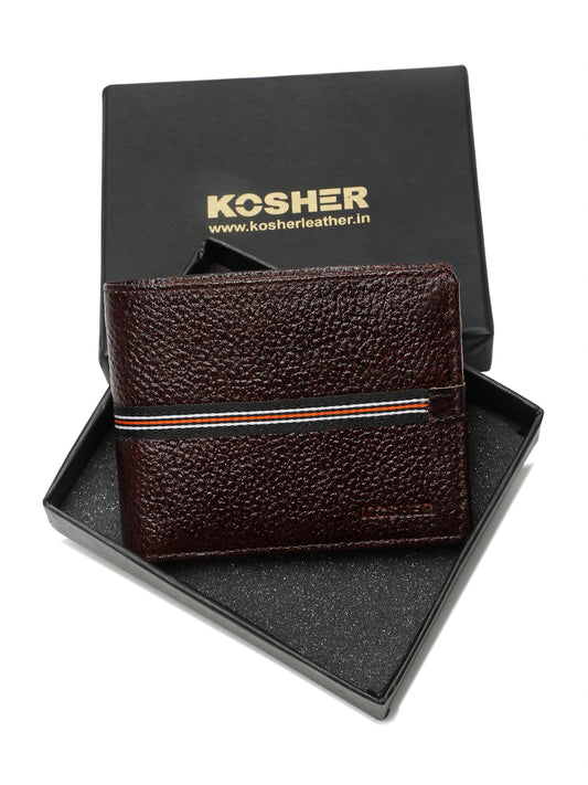 Kosher Premium D.Brown Leather Wallet for Men – Stylish & Durable with Multi-Stripe Design