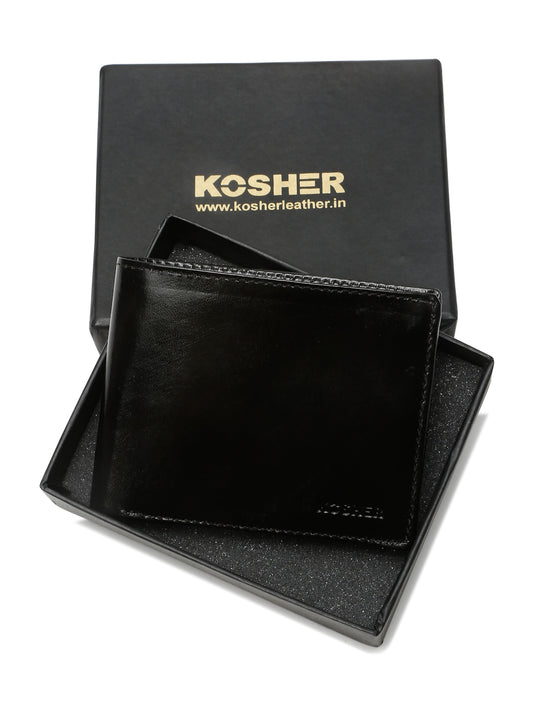 KOSHER Black Color Men,s Classic Bi-Fold Premium Leather Wallet with Coin Pocket & Rear Slip Pocket For Card Slots