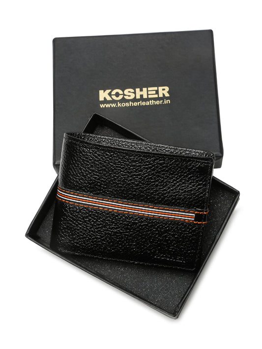 Kosher Premium Black Leather Wallet for Men – Stylish & Durable with Multi-Stripe Design