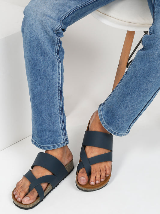 Kosher Navy Color Casual Men's Sandal, Slipper