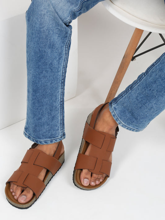 Kosher Tan Bantu Roman Faux Leather Men's Casual Sandal