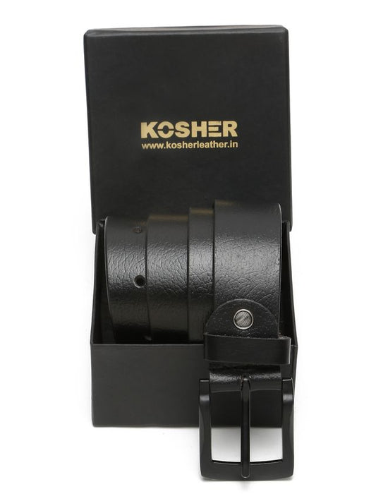 KOSHER Black Color Men's Genuine NDM Leather Belt With Matte Black Buckle – Classic Formal & Casual Wear
