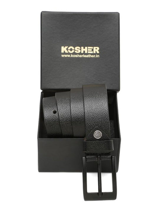 KOSHER Black Color Men's Textured Genuine Leather Belt With Antiqe Finish Buckle – Elegant Textured Finish Belt