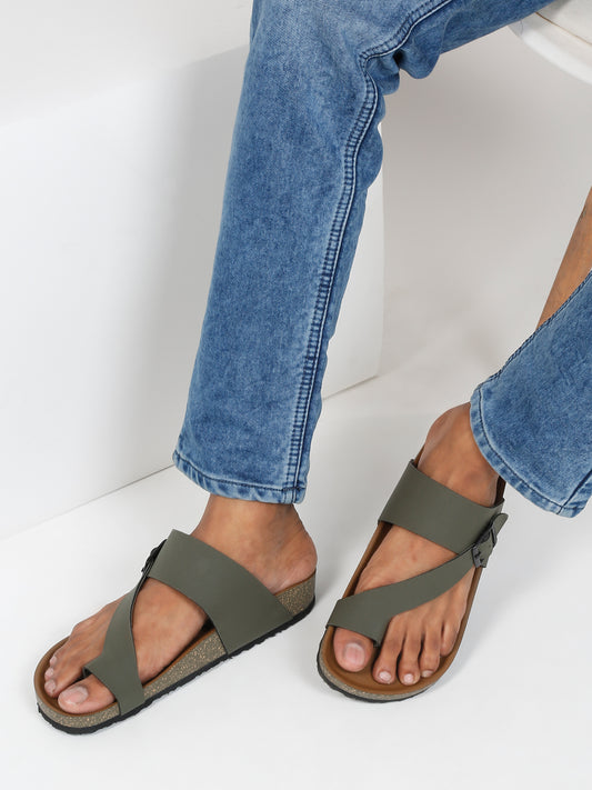 Kosher Olive Color Men's Casual Sandal, Slipper